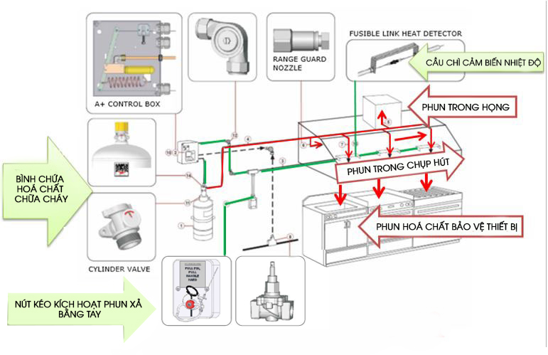 Nguyên lý hoạt động của hệ thống chữa cháy bếp Range Guard