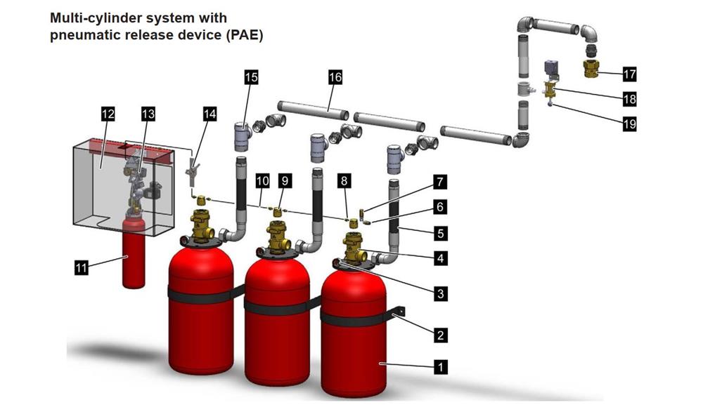 - Có thể đặt bình khí trong khu vực cần chữa cháy