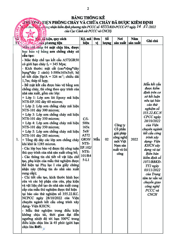 KIỂM ĐỊNH PHƯƠNG TIỆN PHÒNG CHÁY CHỮA CHÁY: " SƠN CHỐNG CHÁY "